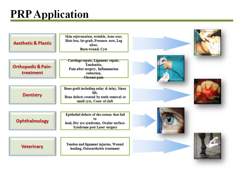 PRP is used in many areas of medicine, including the acceleration of healing of tendon injuries, the treatment of osteoarthritis, in some aspects of dental work (i.e. jaw reconstruction), and in cardiovascular medicine. The concentrated form of plasma has been shown to accelerate wound healing and tissue repair and, thus, could potentially benefit hair restoration procedures.