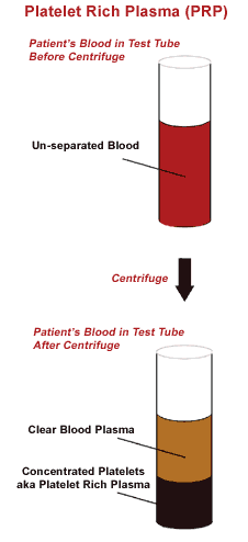 Blood is drawn in our office as though you are having routine blood testing at your primary care physician’s office. The blood is spun in a centrifuge and the PRP is separated and removed from the rest of the blood.